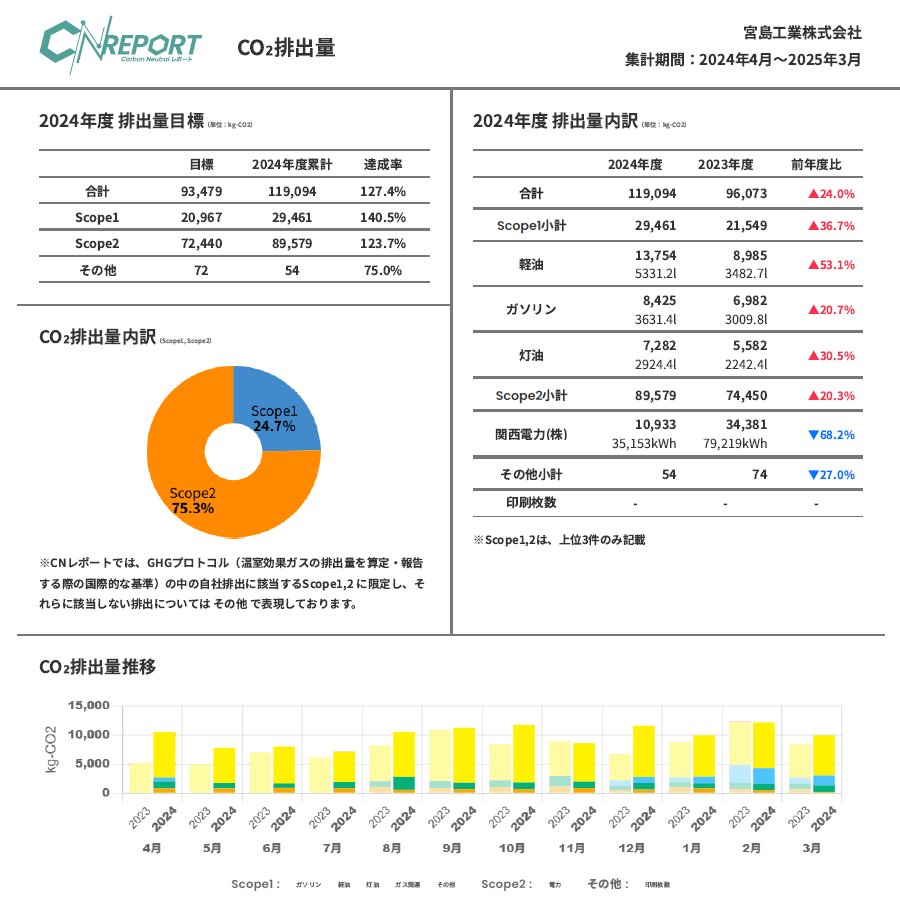 本レポートでは、2024年4月~2025年3月のCO₂排出量を分かりやすくまとめています。
